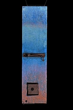 Drew Wood, Drudgery, enamel, acrylic, pumice, and synthetic resin on a found wooden bench from horse drawn carriage from Missouri farm, 11"x44"x1", Lydia Hao Collection | Drew Wood Art | Drew Wood