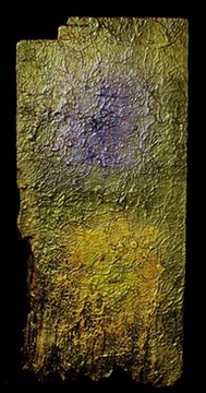 Drew Wood, Ekelhaft #2 (nauseously loathsome), color-shifting enamel, acrylic, and synthetic resin on found wood from Missouri farm, 14"x33"x1.5", Lydia Hao Collection | Drew Wood Art | Drew Wood