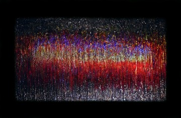 Drew Wood, Acid Rain, color-shifting and thermal reactive enamel, acrylic, encaustic, and synthetic resin on canvas, 60"x36"x2", Mary-Rose and Thomas E. Jeffry, Jr., Esq. Collection | Drew Wood Art | Drew Wood