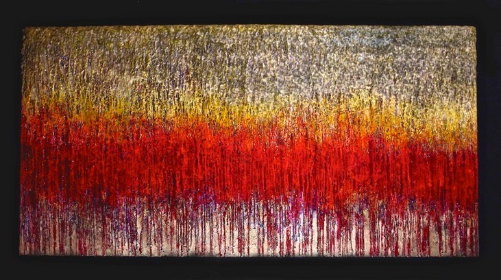 Drew Wood, Brainwaves of Conception, color-shifting enamel, acrylic, encaustic, and synthetic resin on canvas, 48"x72"x2", nfs | Drew Wood Art | Drew Wood