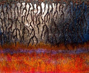 Drew Wood, Visceral, color-shifting and reflective enamel, acrylic, crushed vinyl from found LP records, and synthetic resin on canvas, 60"x48"x1.5", Greg Cham Collection | Drew Wood Art | Drew Wood