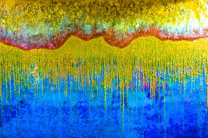 Drew Wood, Zuma, color-shifting enamel, acrylic, found sand (from Zuma Beach, Malibu, CA), and synthetic resin on canvas, 72"x48"x2", Darshan R. Shah, M.D., FACS Collection | Drew Wood Art | Drew Wood