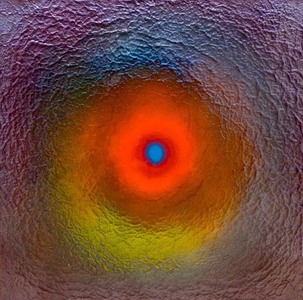 Drew Wood, Retinal Halo 4, oil, color-shifting and thermal reactive enamel, acrylic, and synthetic resin on canvas, 24"x24"x1.5", nfs | Drew Wood Art | Drew Wood