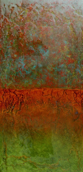 Drew Wood, Being Between, oil, color-shifting enamel, acrylic, pumice, garnet, and synthetic resin on canvas, 24"x48"x1.5", nfs | Drew Wood Art | Drew Wood
