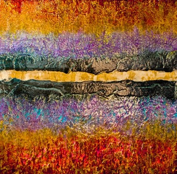 Drew Wood, The Four Sights, oil, color-shifting enamel, acrylic, encaustic, gold wire, pumice, garnet, and synthetic resin on wood, 48"x48'x2", nfs | Drew Wood Art | Drew Wood